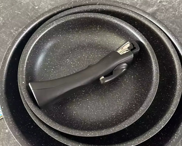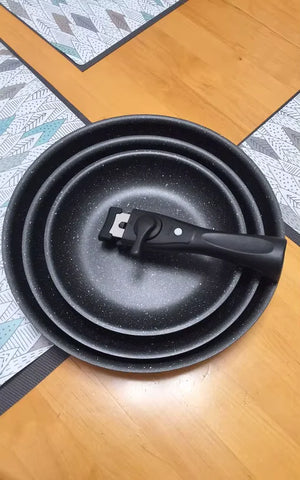 The pans are oven-safe up to 220°C . The handle is removable and must be taken off before cooking.